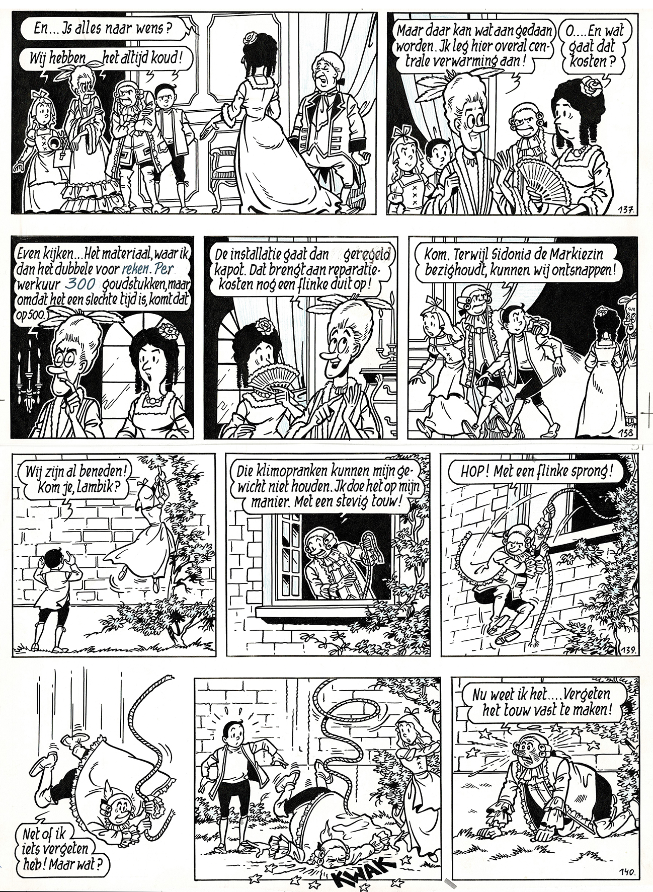 Bob et Bobette, Ce cher Barabas, planche originale à l’encre de chine pour cet album paru en 1975 chez Erasme. Dimensions : 42 cm x 31,5 cm.