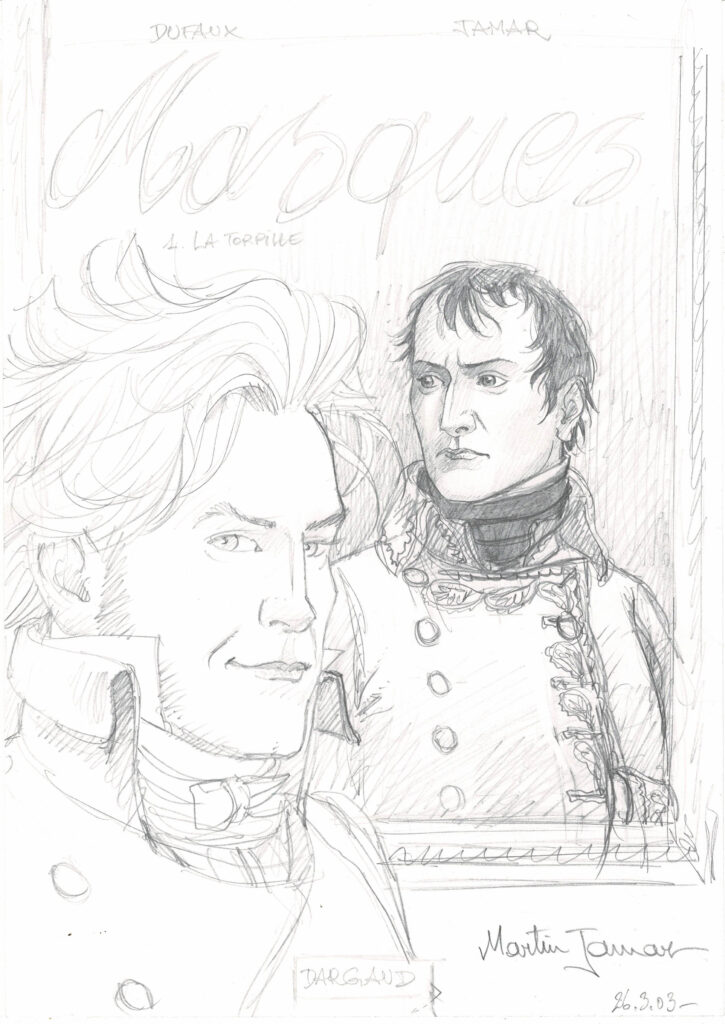 Double Masque, La Torpille, projet de couverture à la mine de plomb. Dimensions : 30 cm x 21 cm.