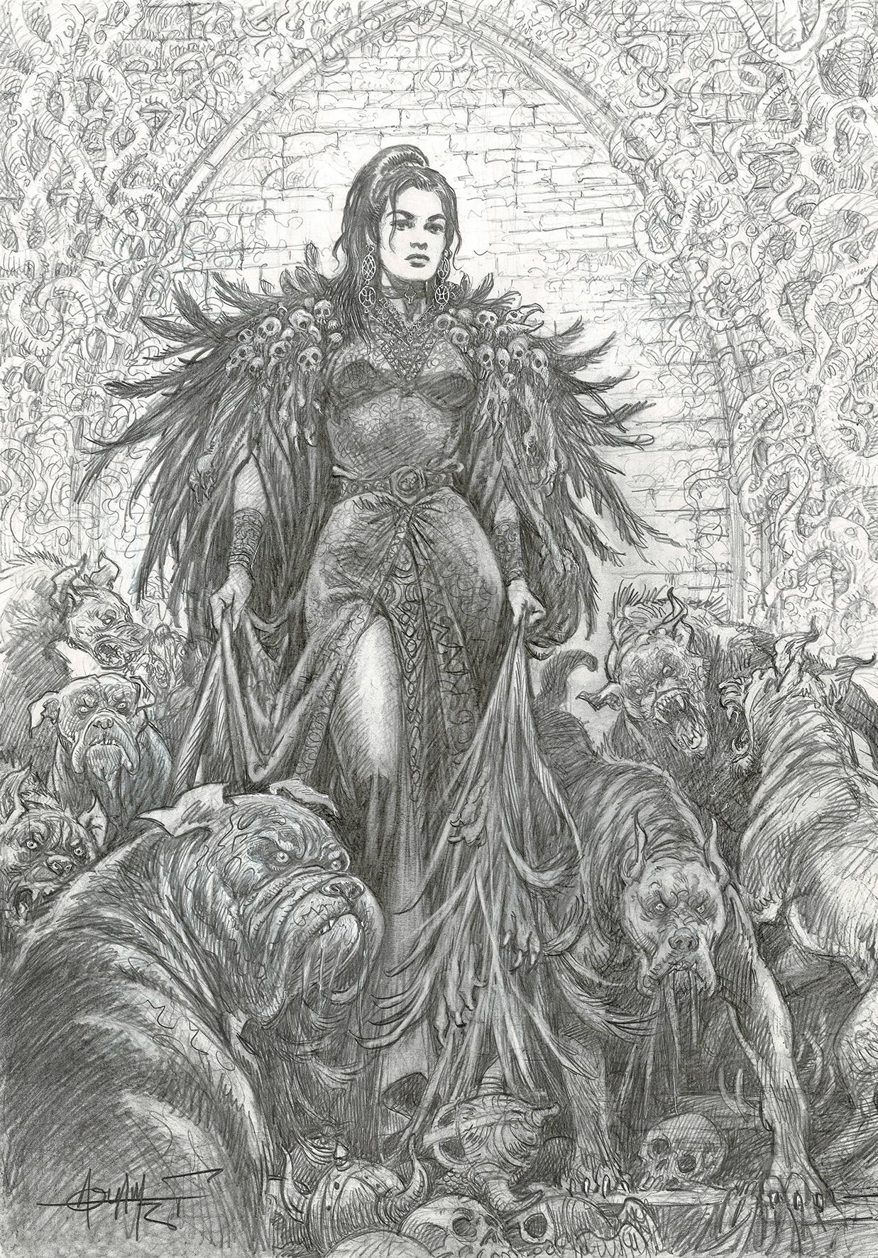 Saga Valta Tome 2, projet de couverture très grand format à la mine de plomb pour cet album paru en 2014 au Lombard. Dimensions : 59,5 cm x 42 cm.