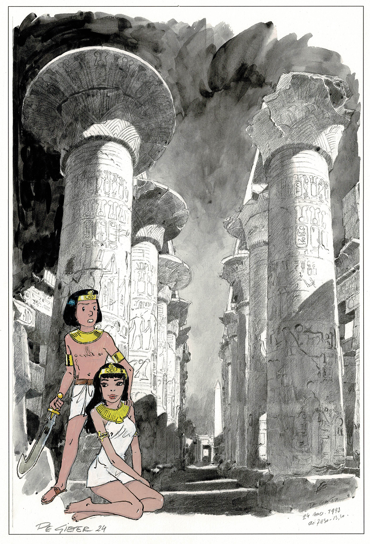 Papyrus, Toutankhamon le pharaon assassiné, projet de couverture à l’encre de chine et à l’aquarelle. Dimensions : 48,5 cm x 36,5 cm.