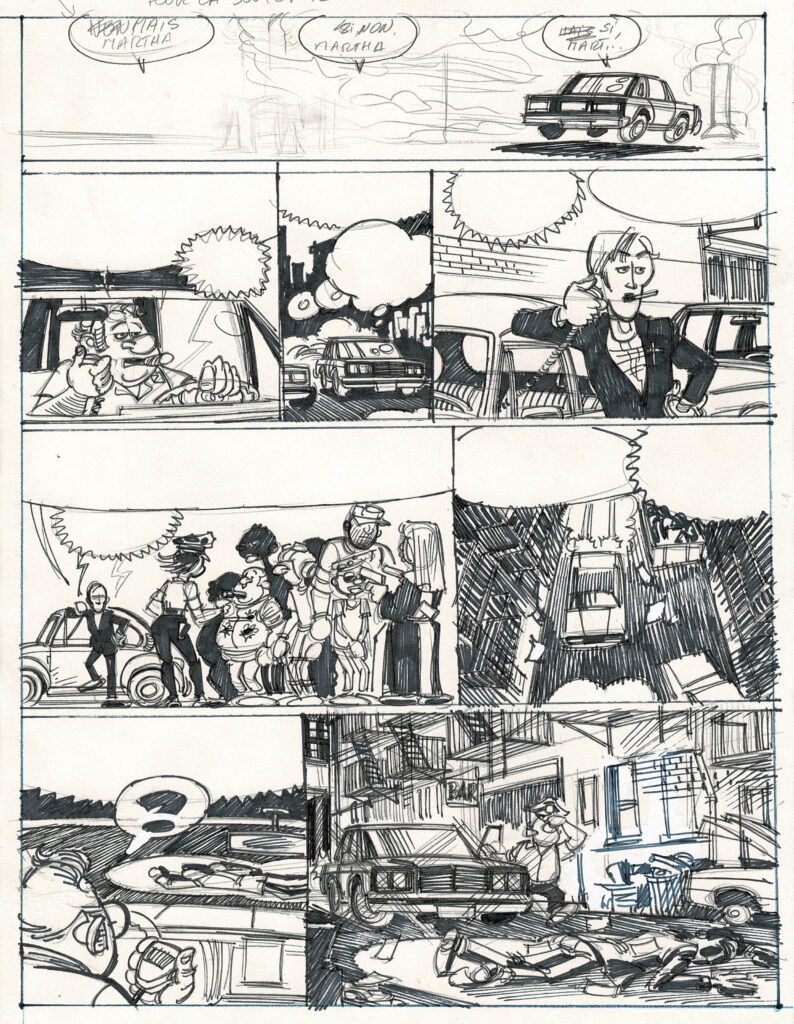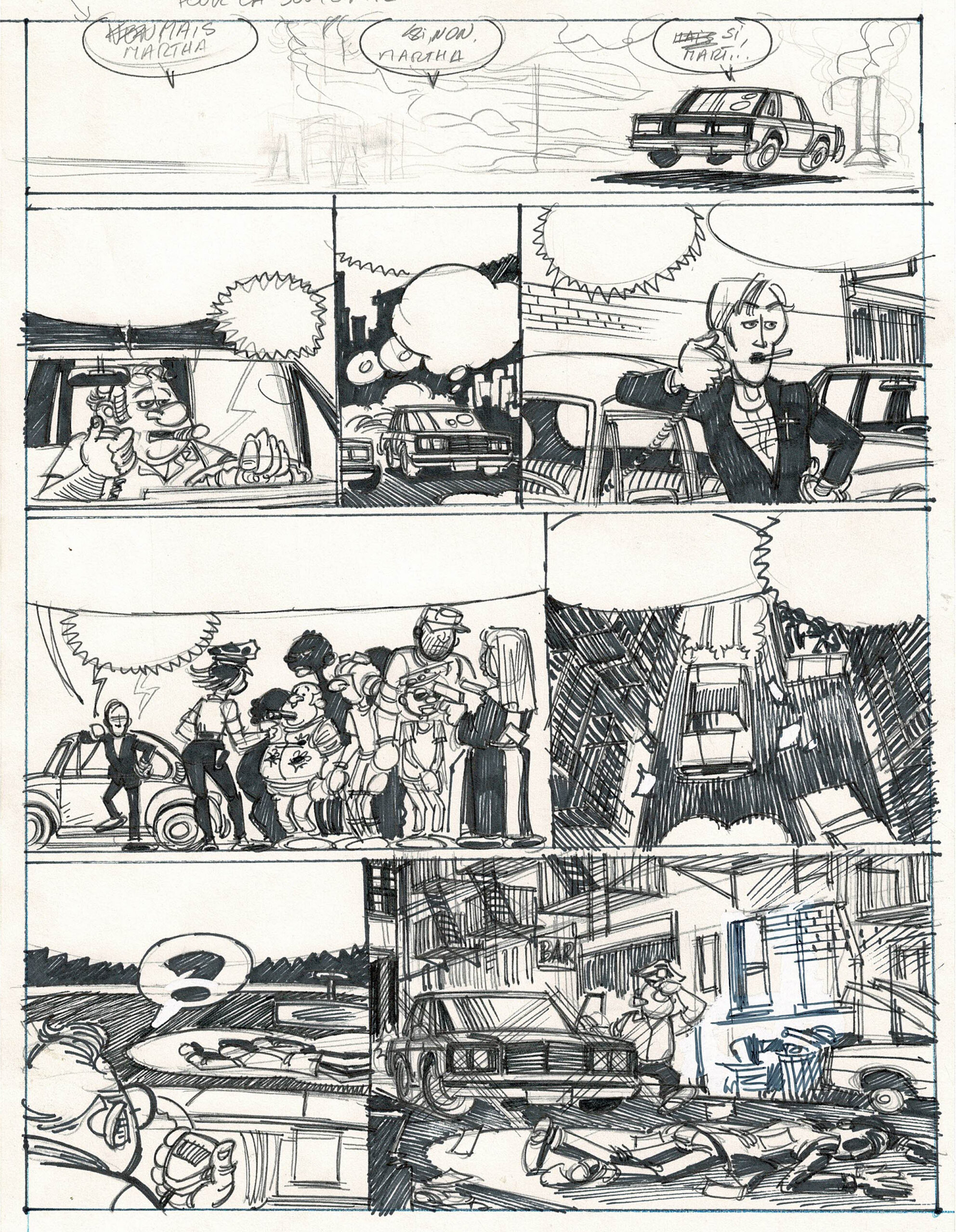 Soda, planche originale préparatoire au feutre fin. Dimensions : 29,5 cm x 21 cm.