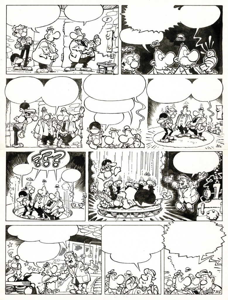 Achille Talon, L’arme du crocodile, planche originale à l’encre de chine. Dimensions : 46,5 cm x 36 cm.