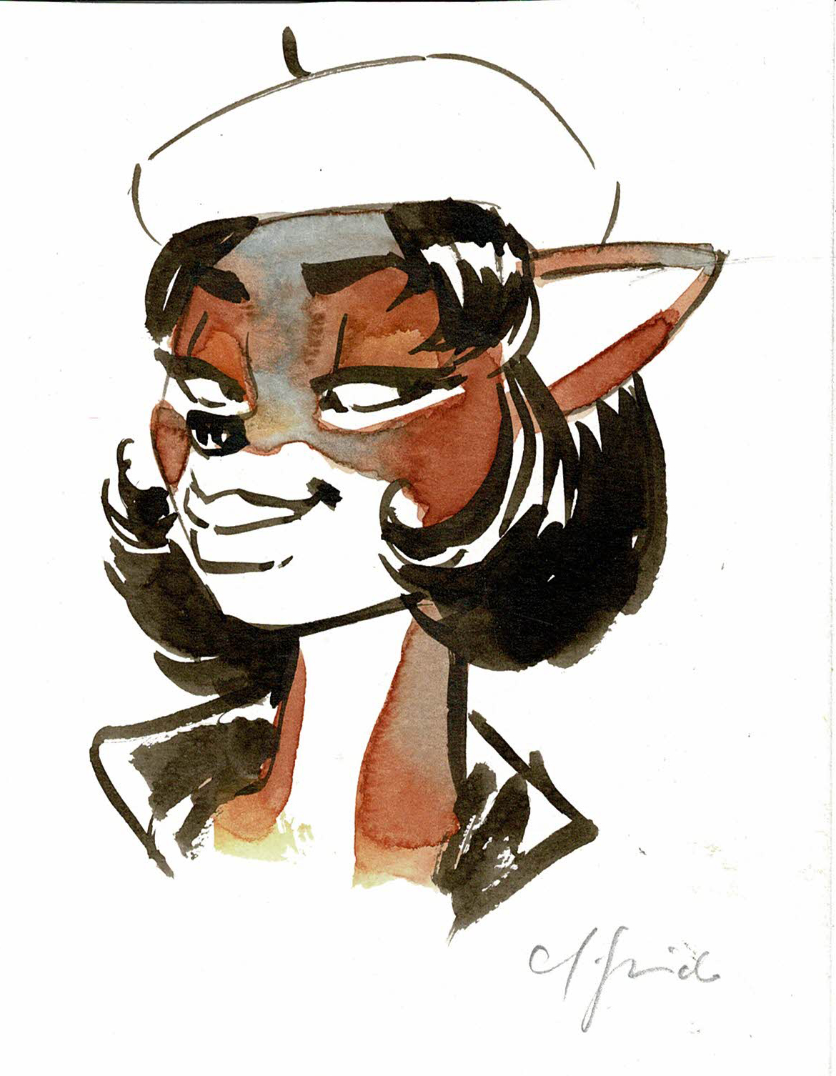 Blacksad, dessin original à l’encre de chine et à l’aquarelle. Dimensions : 13 cm x 11,5 cm.
