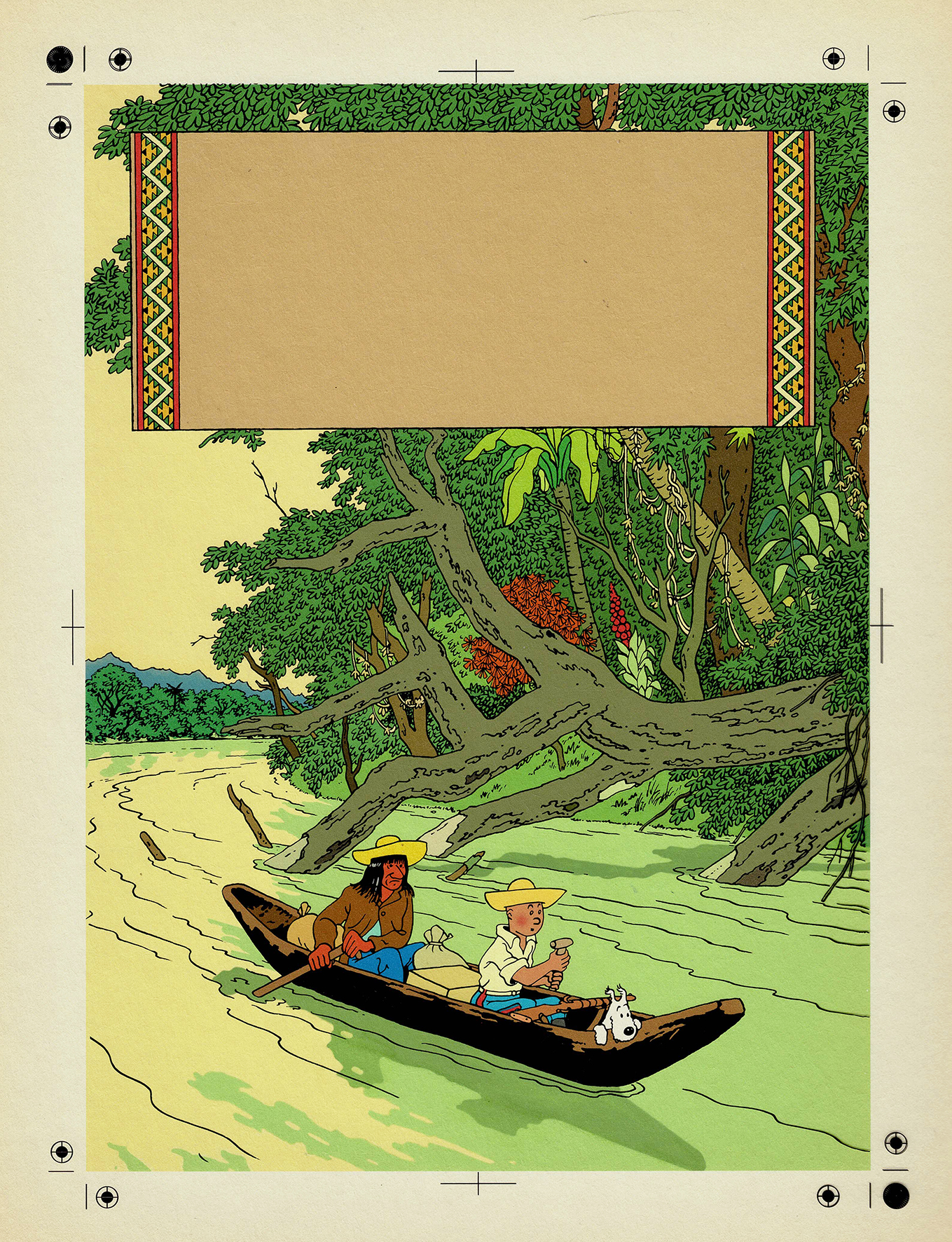 Tintin, L’Oreille cassée, bleu de coloriage et son film noir pour la couverture de l’album. Dimensions : 41 cm x 32,5 cm.