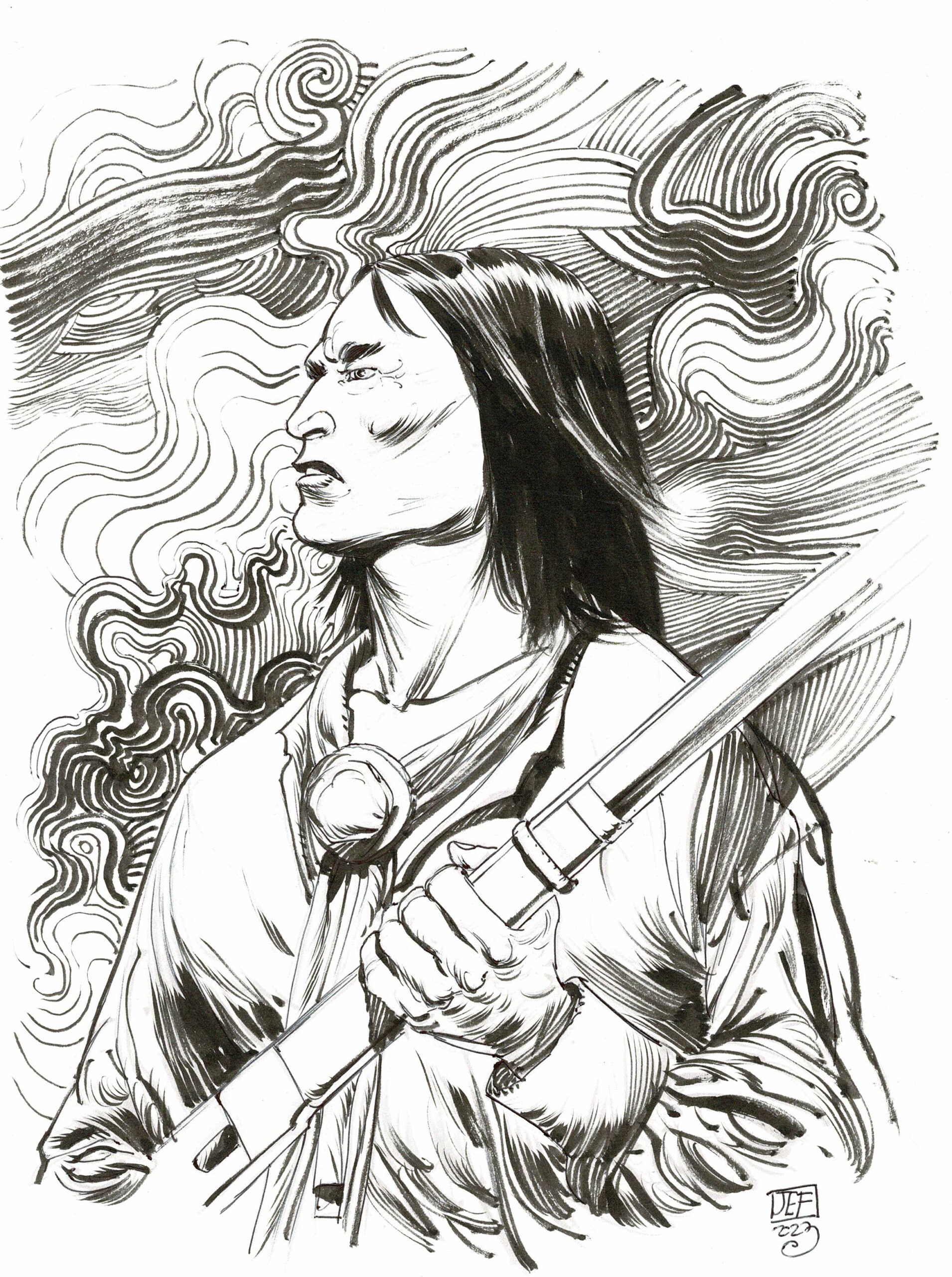 Indians, dessin original à l’encre de chine. Dimensions : 29,5 cm x 21 cm.