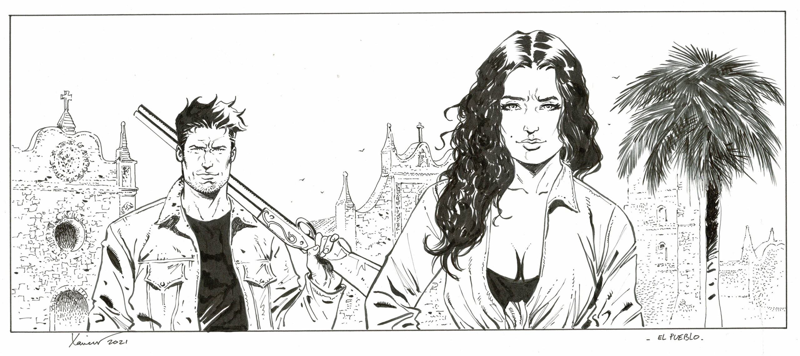 Tango, dessin original à l’encre de chine. Dimensions : 42 cm x 29,5 cm.