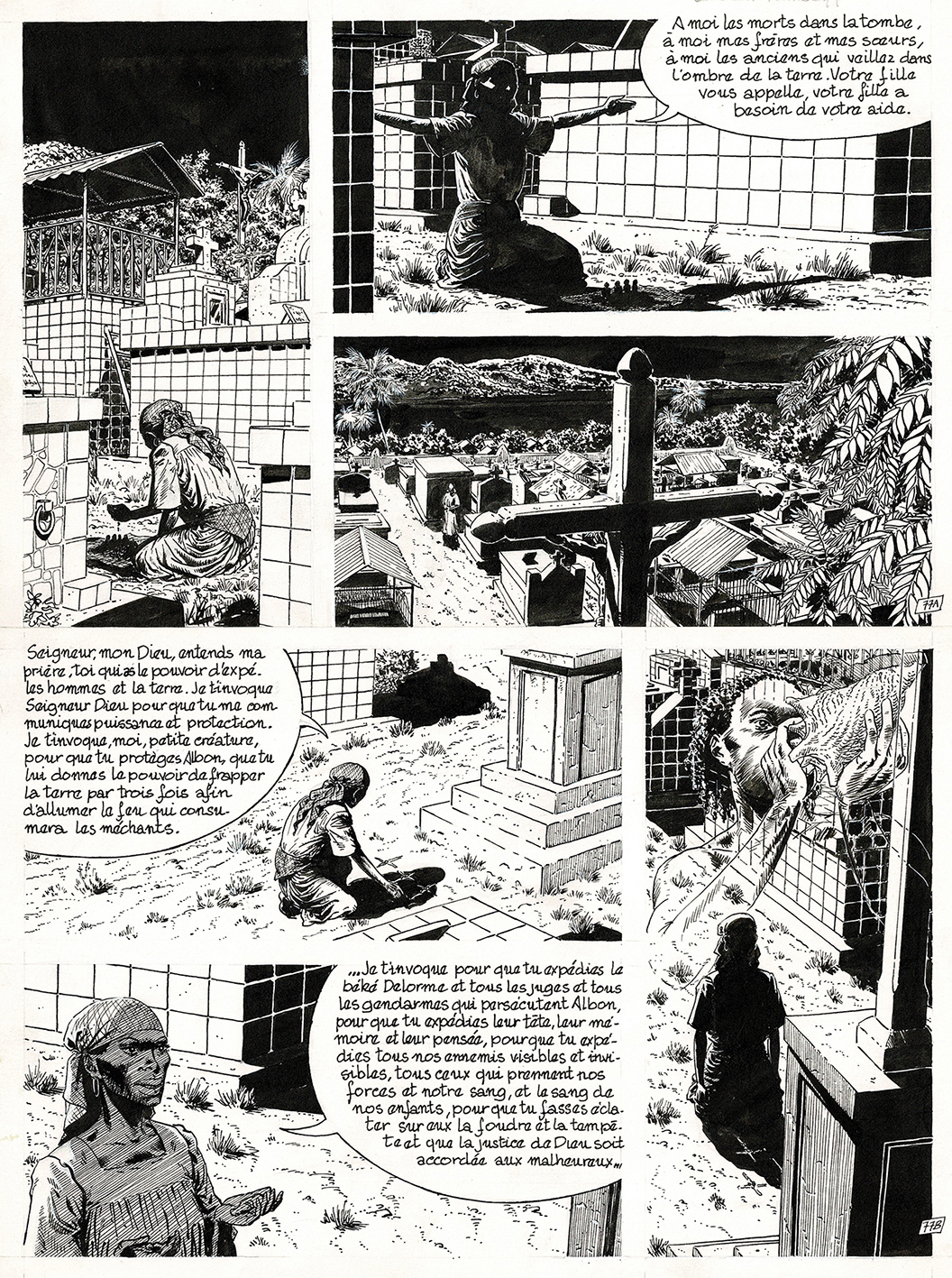 Le sang du flamboyant, planche originale à l’encre de chine. Dimensions : 43 cm x 32 cm.