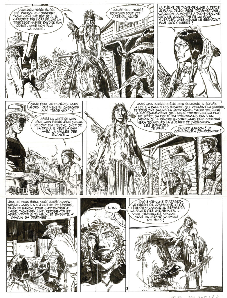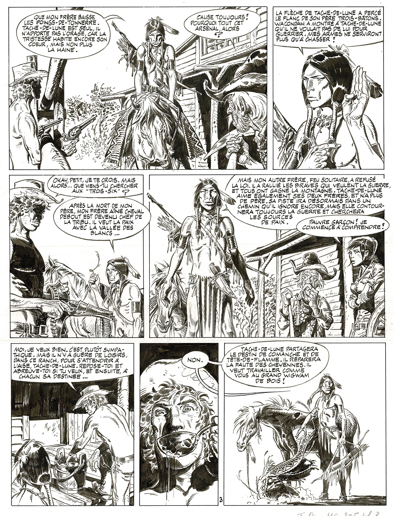 Comanche, Les guerriers du désespoir, planche originale à l’encre de chine pour cet album paru en 1973 au Lombard. Dimensions : 46,5 cm x 36 cm.