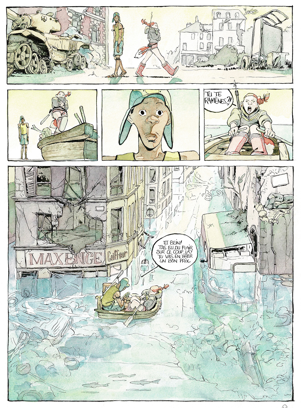 Mécanique céleste, planche originale à l’encre de chine et à l’aquarelle. Dimensions : 40 cm x 30 cm.