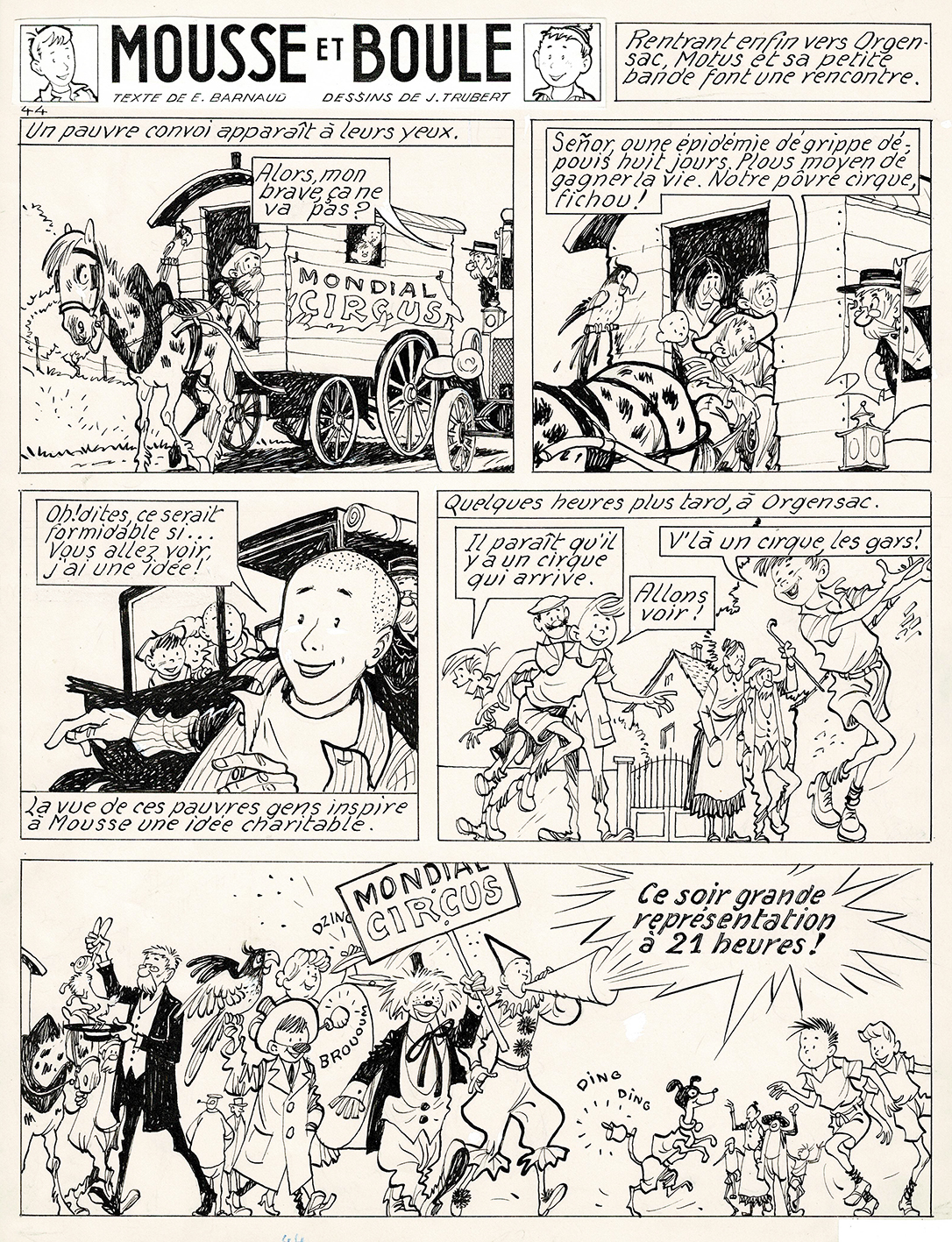 Mousse et Boule, planche originale à l’encre de chine. Dimensions : 36 cm x 28 cm.