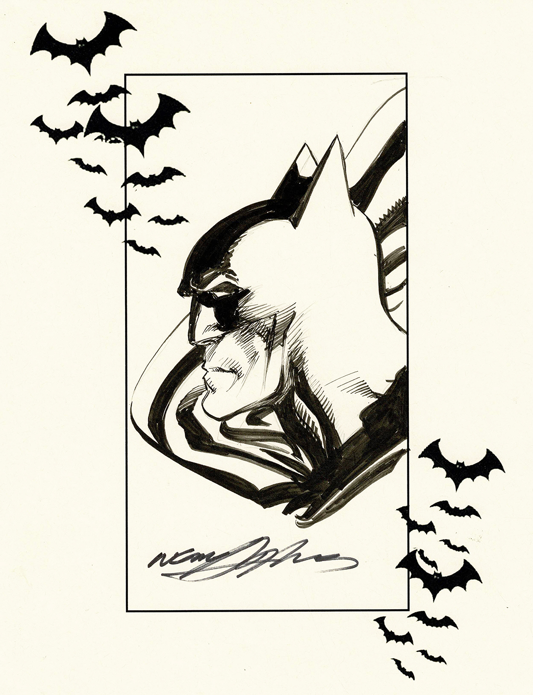 Batman, dessin original au feutre fin. Dimensions : 28 cm x 21,5 cm.