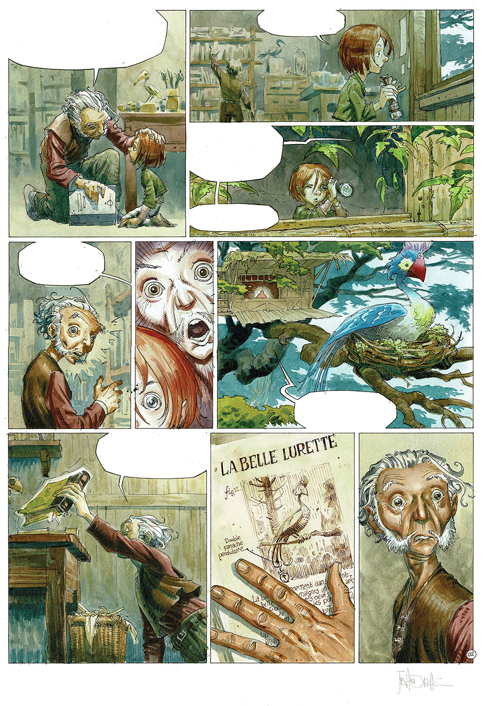Azimut, Les aventuriers du temps perdu, planche originale à l’encre de chine et à l’aquarelle pour cet album paru en 2012 chez Vents d’Ouest. Dimensions : 61 cm x 46 cm.