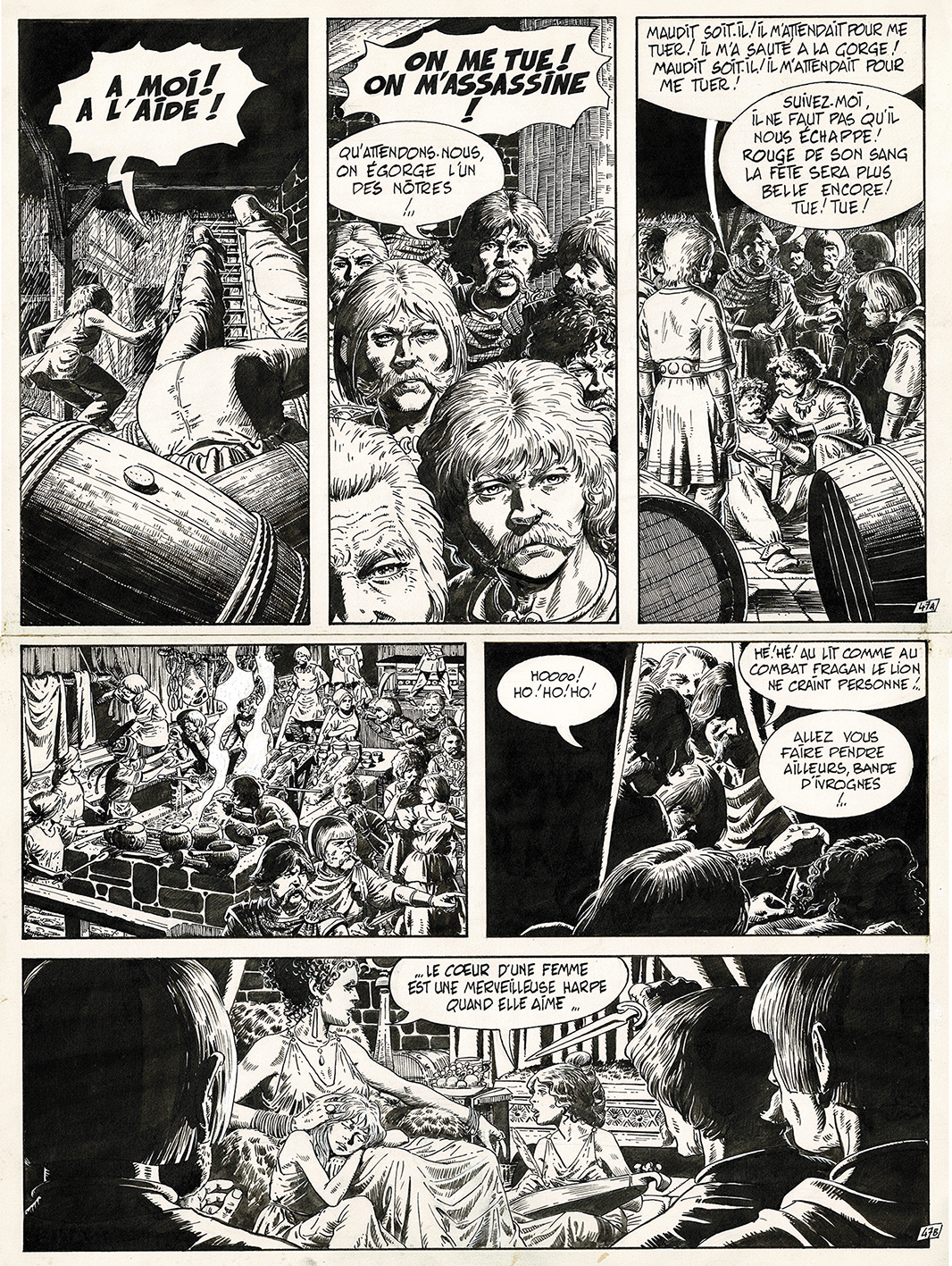 Bran Ruz, planche originale à l’encre de chine pour cet album paru en 1981 chez Casterman. Dimensions : 56 cm x 42,5 cm.