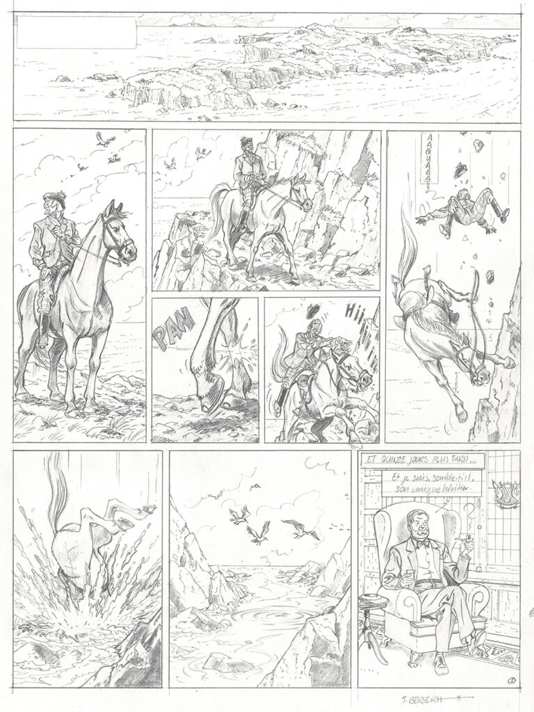 Blake et Mortimer, L’île du loup, planche originale à la mine de plomb parue dans le journal Tintin Spécial 77 ans en 2023. Dimensions : 46,5 cm x 32 cm.