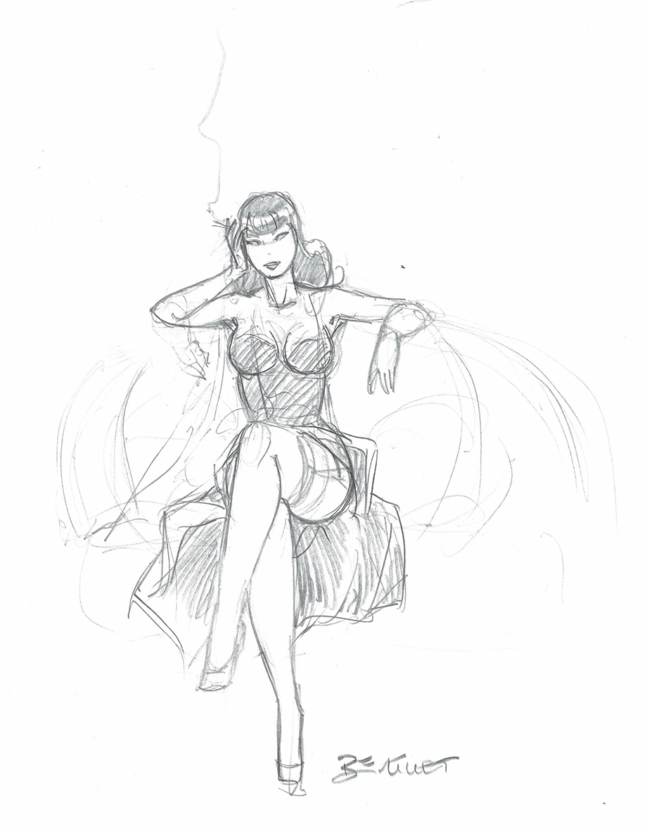 Poison Ivy dans son fauteuil Emmanuelle, dessin original à la mine de plomb. Dimensions : 29,5 cm x 21 cm.