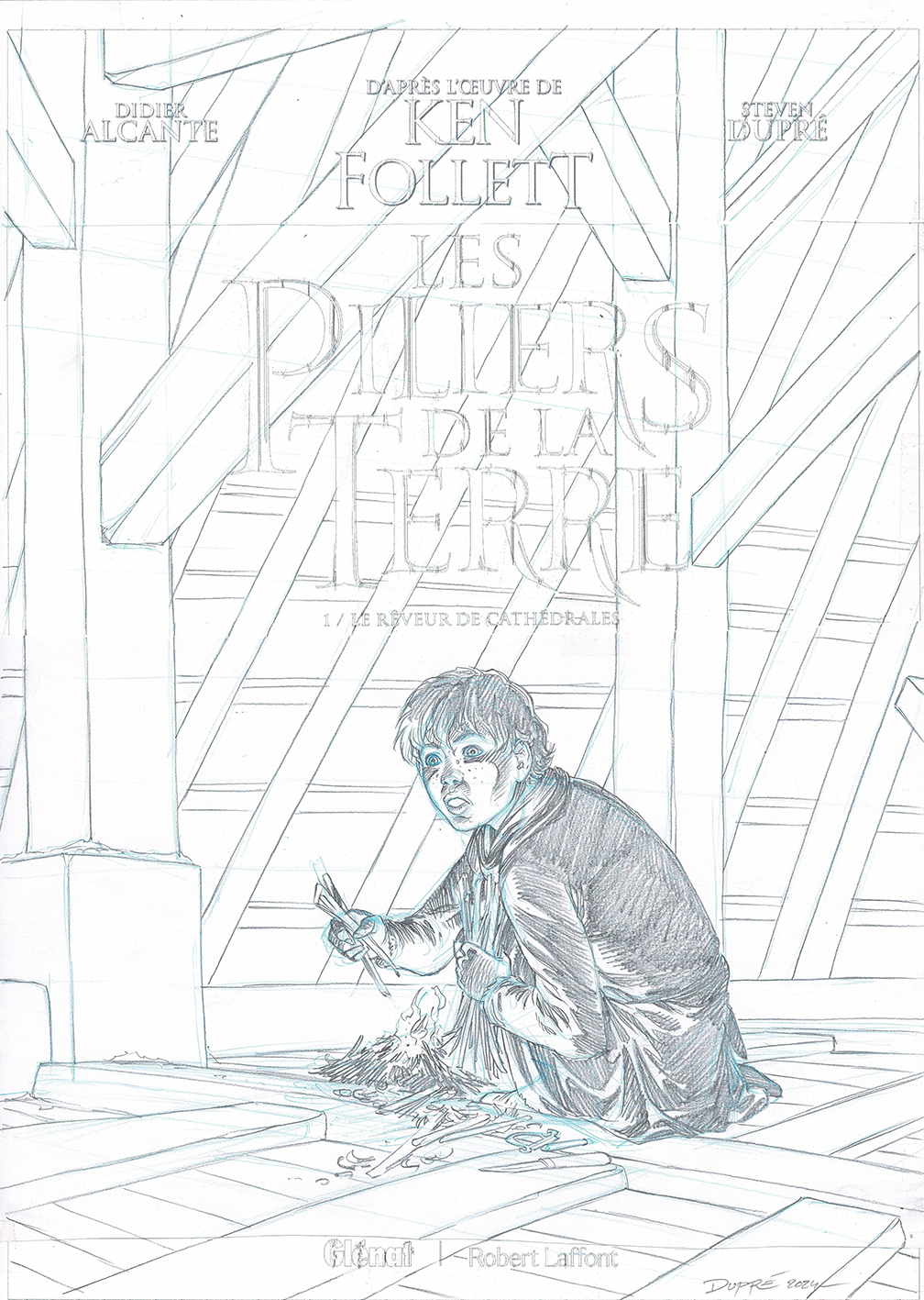 Les piliers de la terre, Le rêveur de cathédrale, projet de couverture à la mine de plomb. Dimensions : 42 cm x 29,5 cm.