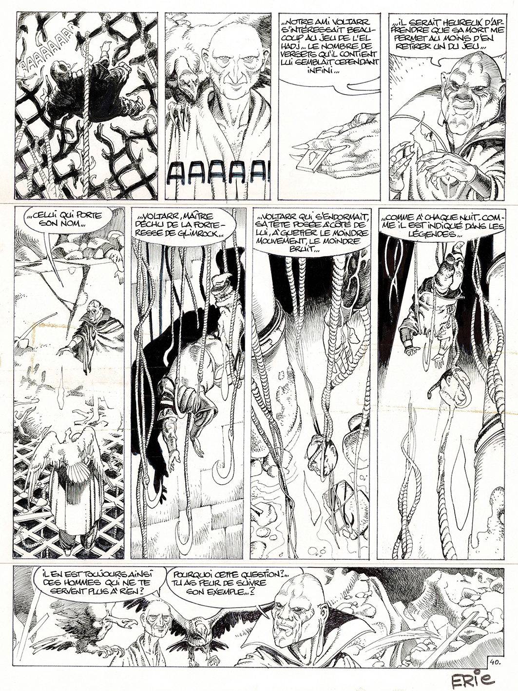 Le Maître des brumes, planche originale à l’encre de chine. Dimensions : 51 cm x 36,5 cm.