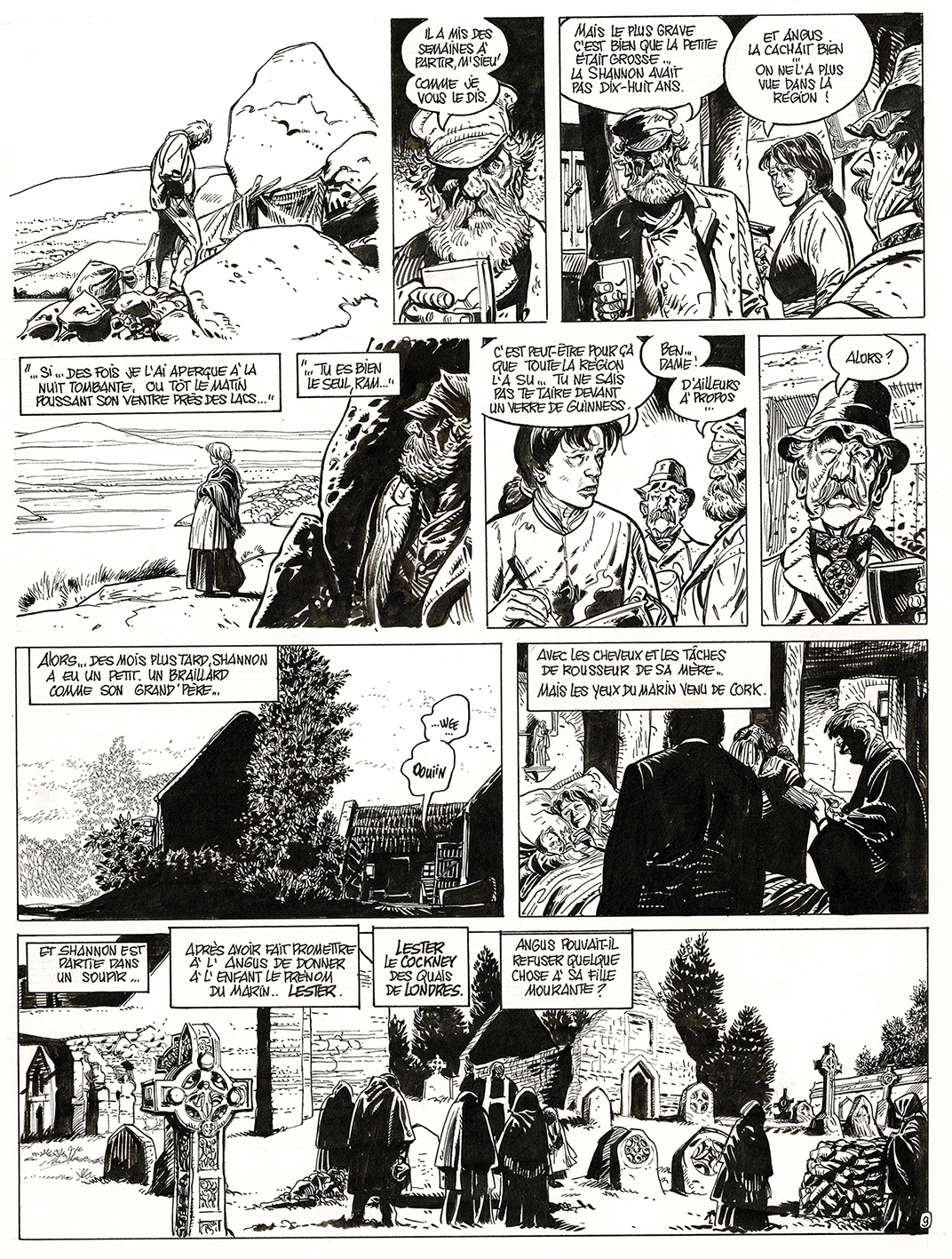 Lester Cockney, Irish Melody, planche originale à l’encre de chine. Dimensions : 55 cm x 36,5 cm.