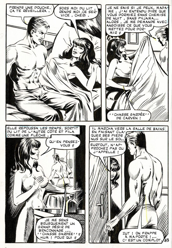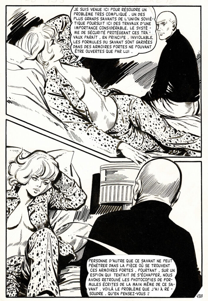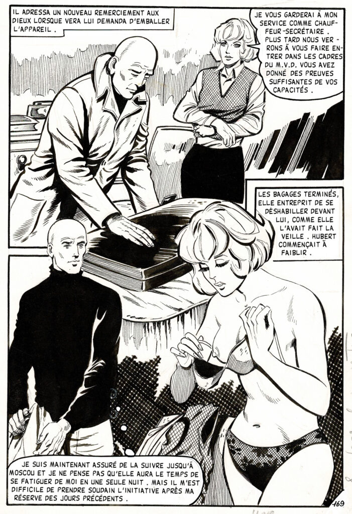 OSS 117, ensemble de 5 planches originales à l’encre de chine. Format divers.