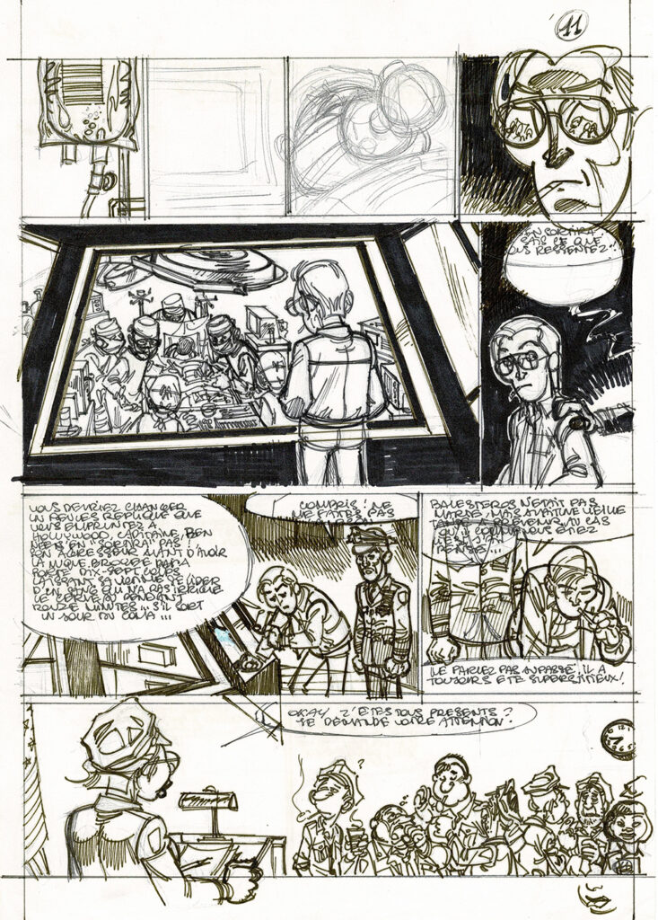 Soda, planche originale préparatoire au feutre fin. Dimensions : 29,5 cm x 21 cm.