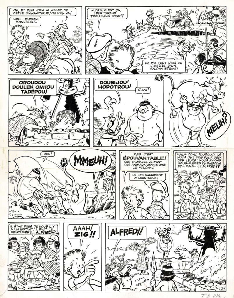 Zig et Puce, SOS Sheila, planche originale à l’encre de chine. Dimensions : 42,5 cm x 33,5 cm.