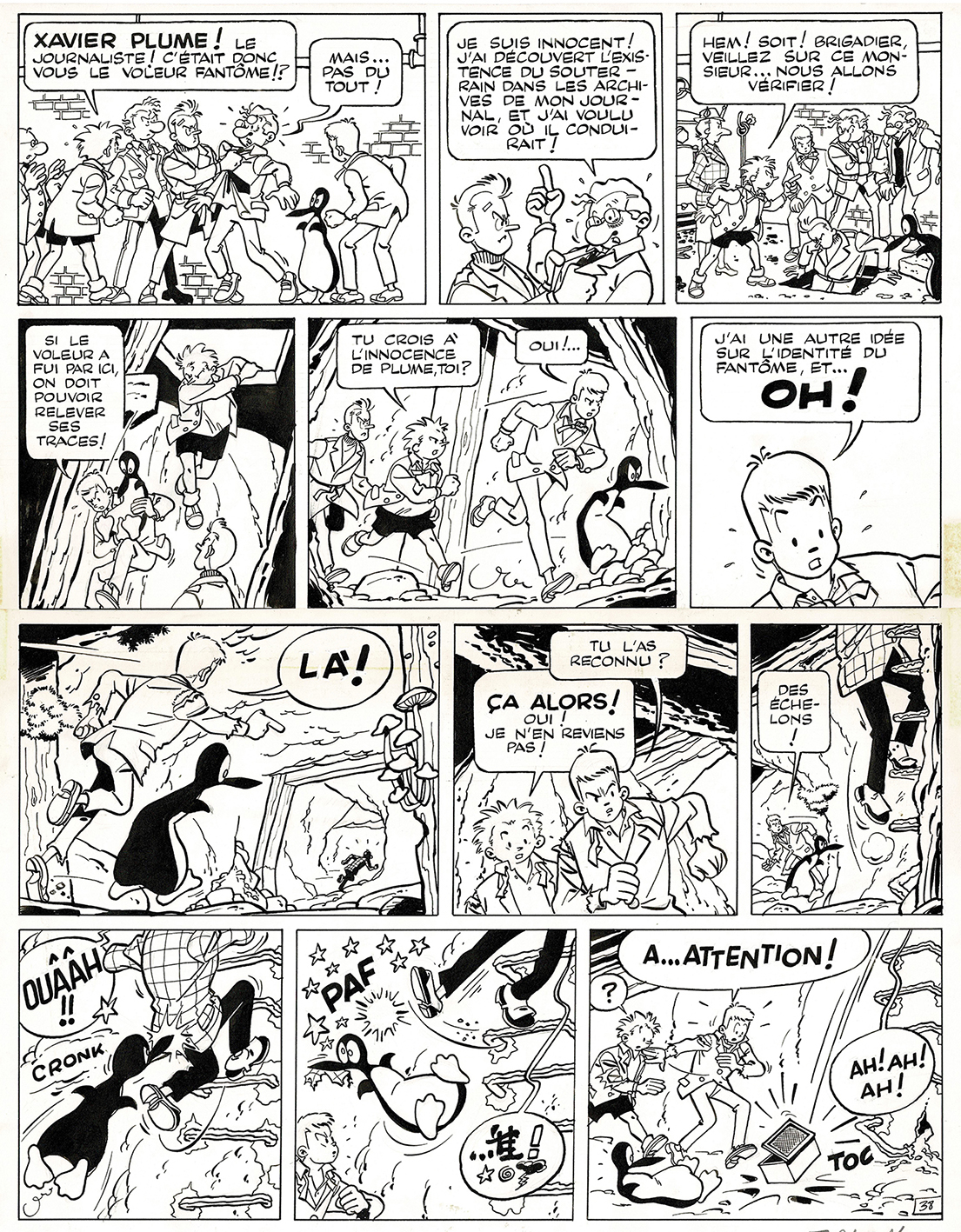 Zig et Puce, Le prototype Zéro-Zéro, planche originale à l’encre de chine. Dimensions : 47,5 cm x 37 cm.
