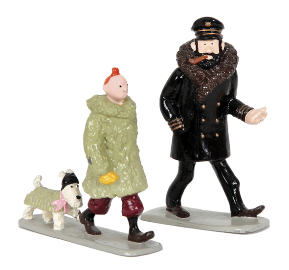 PIXI : Tintin, 4534, avec Milou et Haddock en manteau de fourrure, L’Etoile mystérieuse, 1990, 1850 ex., 9 cm, BC.