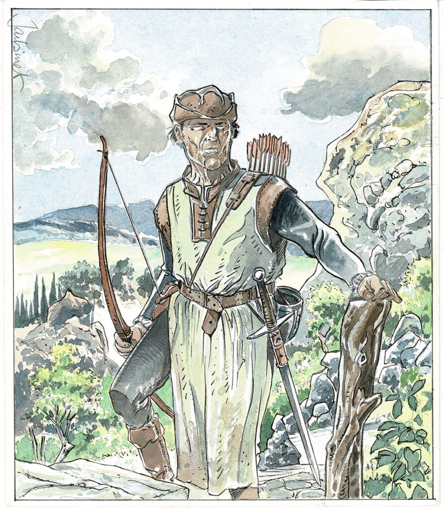 Mémoire de cendres, dessin original à l’encre de chine et à l’aquarelle. Dimensions : 18,5 cm x 16 cm.