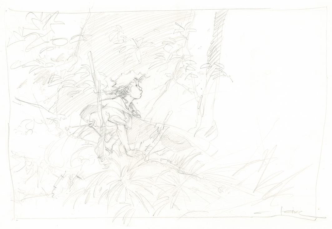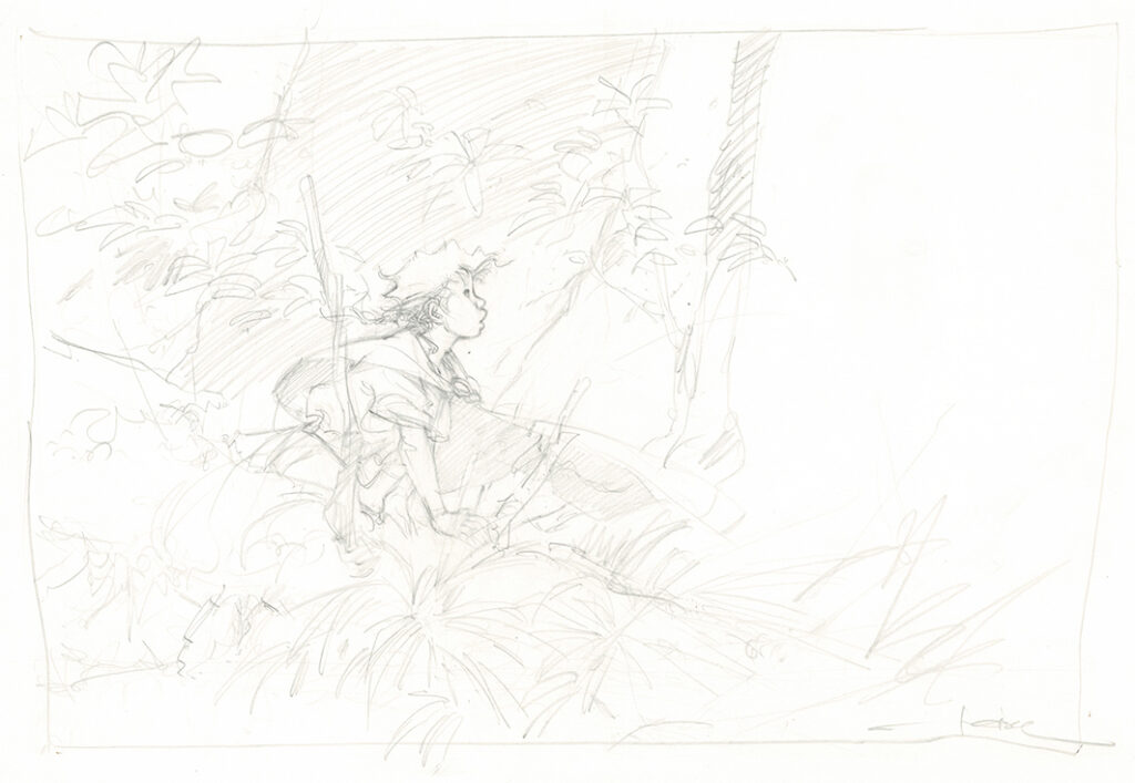 Dessin original préparatoire très grand format à la mine de plomb réalisé pour un ex-libris. Dimensions : 63 cm x 48,5 cm.