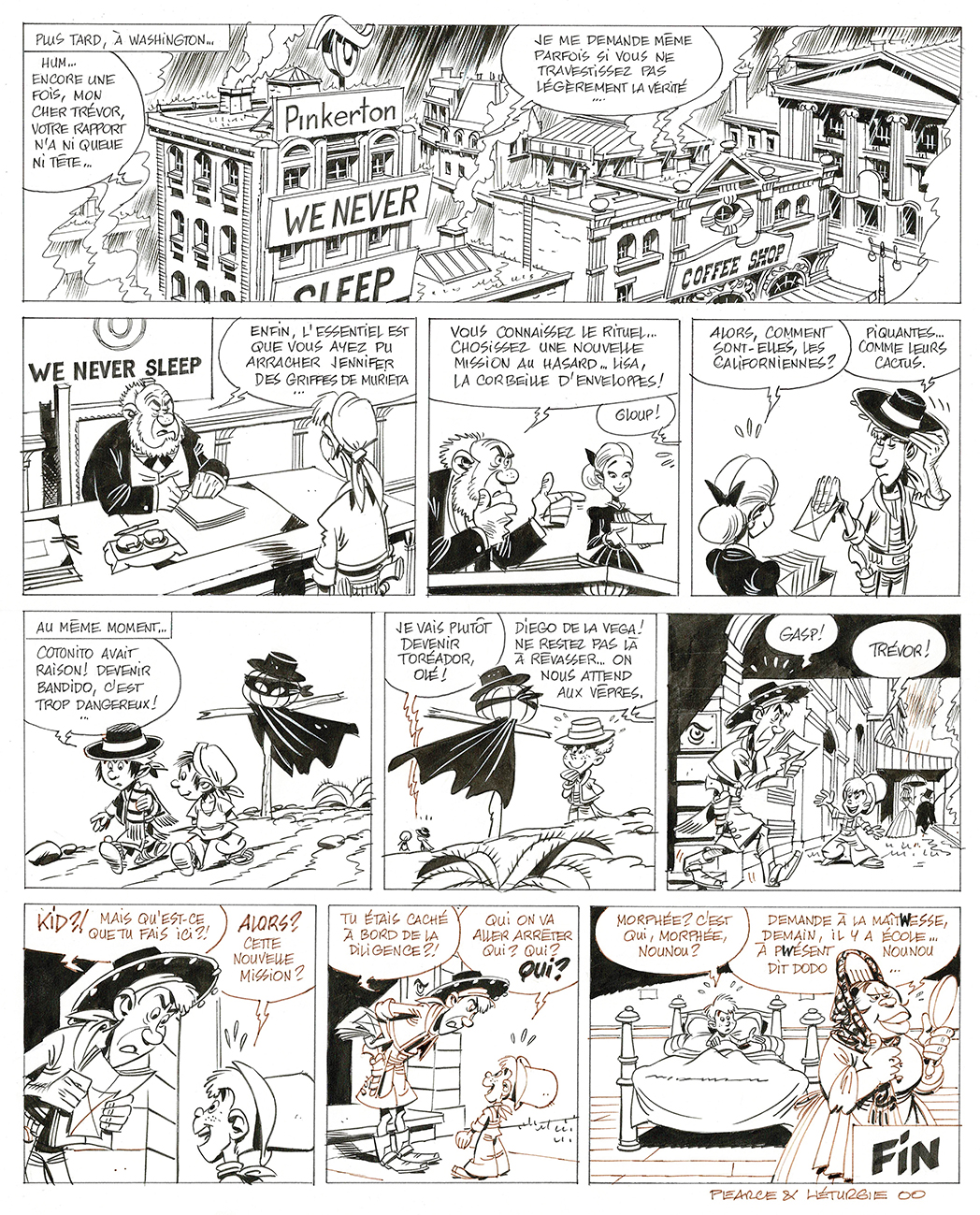 Cotton Kid, Au nom de la loi et de Mr Pinkerton, planche originale à l’encre de chine. Dimensions : 38,5 cm x 31,5 cm.