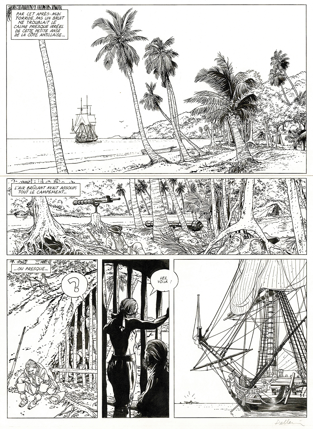 L’Epervier, Archives Secrètes, planche originale à l’encre de chine pour cet album paru en 2006 chez Dupuis. Dimensions : 47,5 cm x 35 cm.