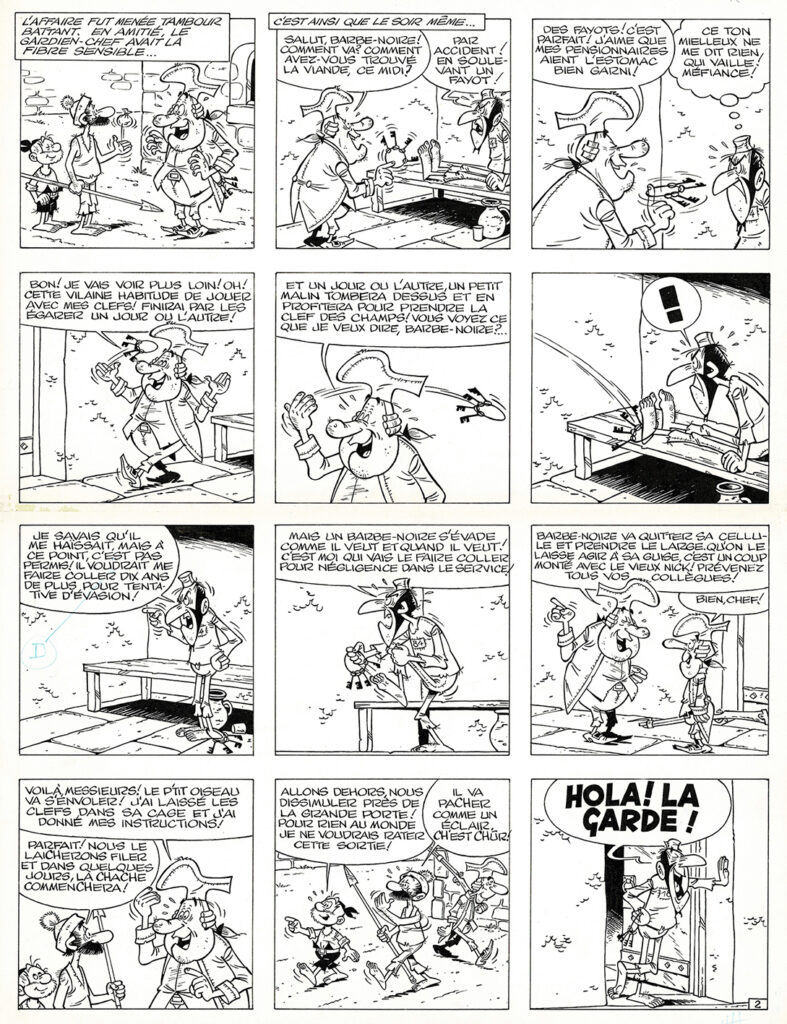 Vieux Nick, Liberté provisoire, planche originale à l’encre de chine. Dimensions : 48,5 cm x 36,5 cm.