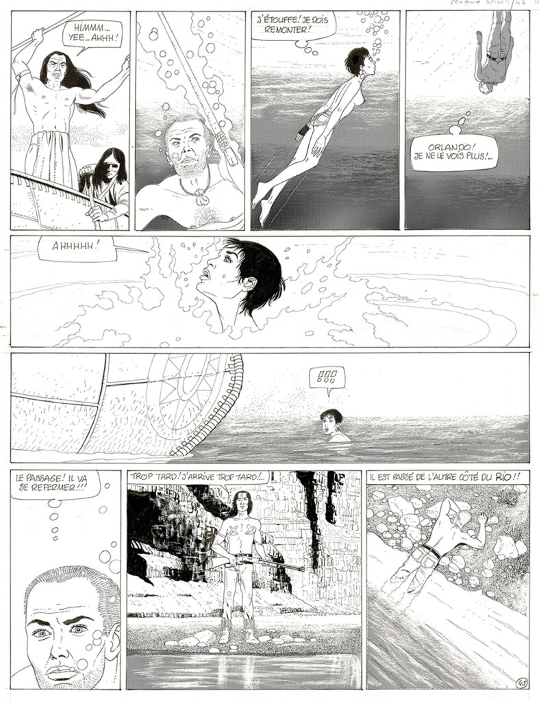 Santiag, De l’autre côté du Rio, planche originale à l’encre de chine. Dimensions : 50 cm x 36 cm.