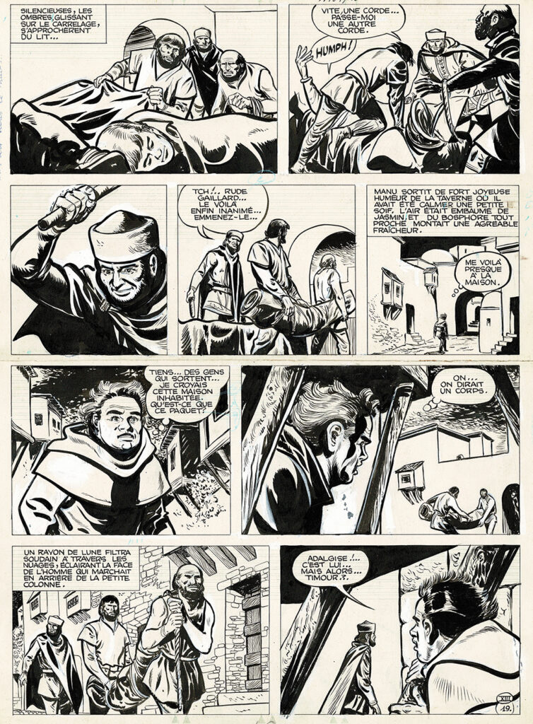 Les Timour, Mission à Bysance, planche originale à l’encre de chine. Dimensions : 52 cm x 41,5 cm.