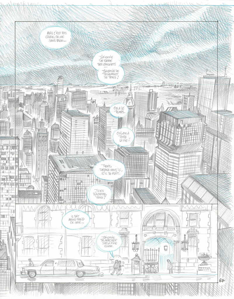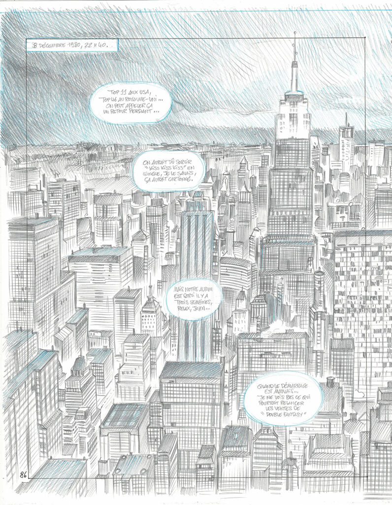 Retour à Liverpool, double planche originale à l’encre de chine pour cet album paru en 2021 chez Futuropolis. On joint le crayonné des 2 planches. Dimensions : 4x 41 cm x 29,5 cm.