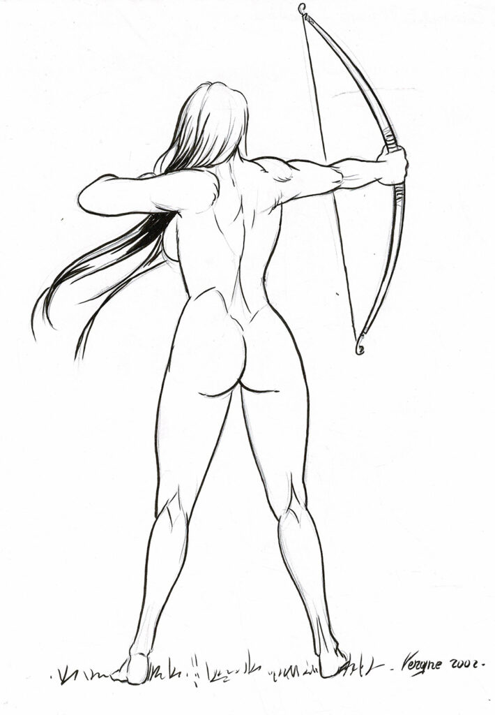 Archère, dessin original à l’encre de chine. Dimensions : 29,5 cm x 21 cm.