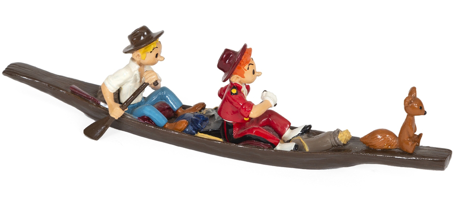 PIXI : Spirou avec Spip et Fantasio en pirogue (4698), 1990, n¡5/1750, 20 cm, BC.