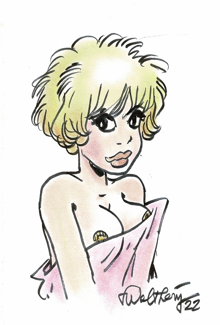 Natacha, dessin original au feutre fin et à l’aquarelle. Dimensions : 21 cm x 14,5 cm.