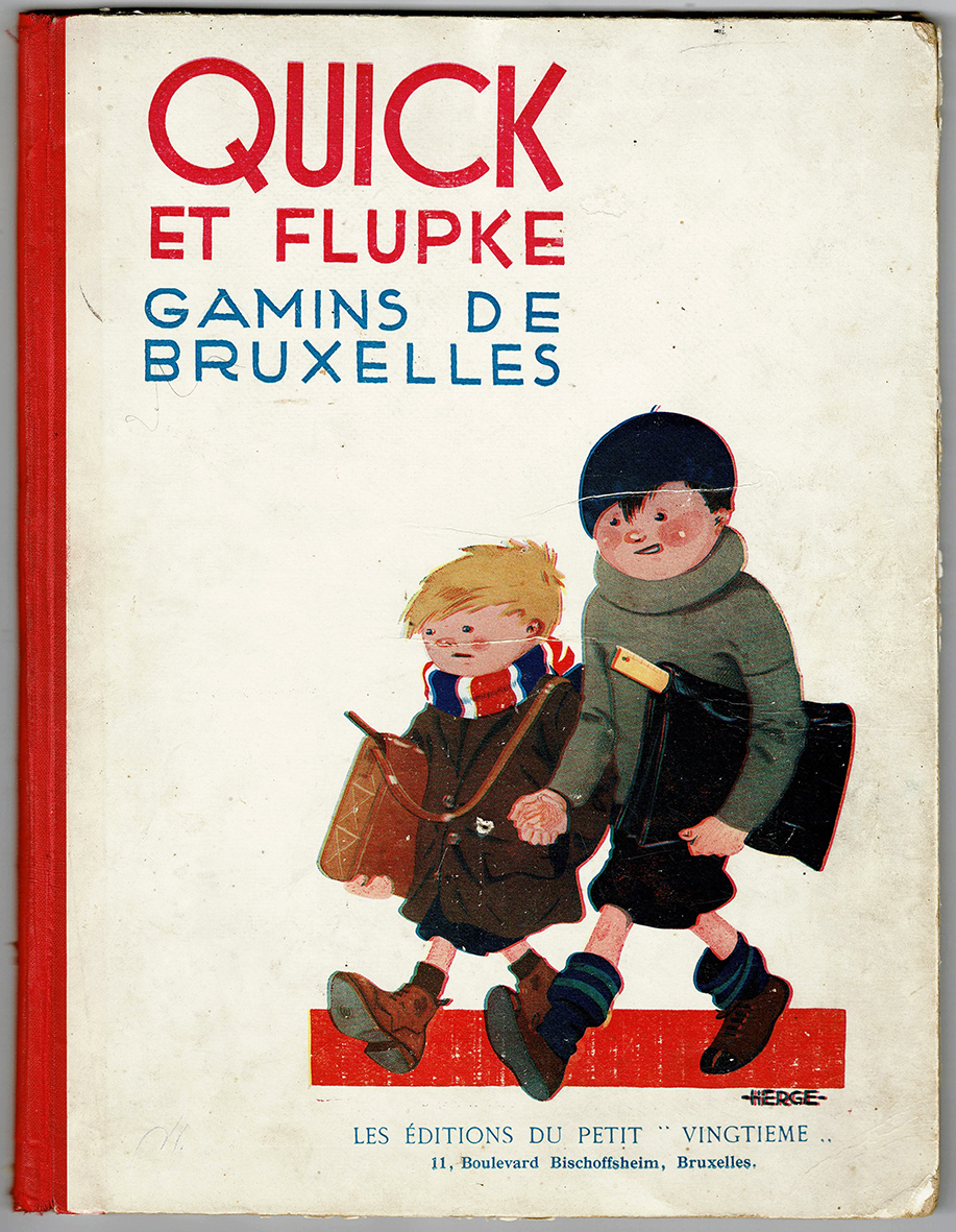 Tome 1, tirage de tête noir & blanc « Petit Vingtième » de 1930 (1er mille) numéroté et signé Quick et Flupke. Très rare. Très bon état (cahier détaché).