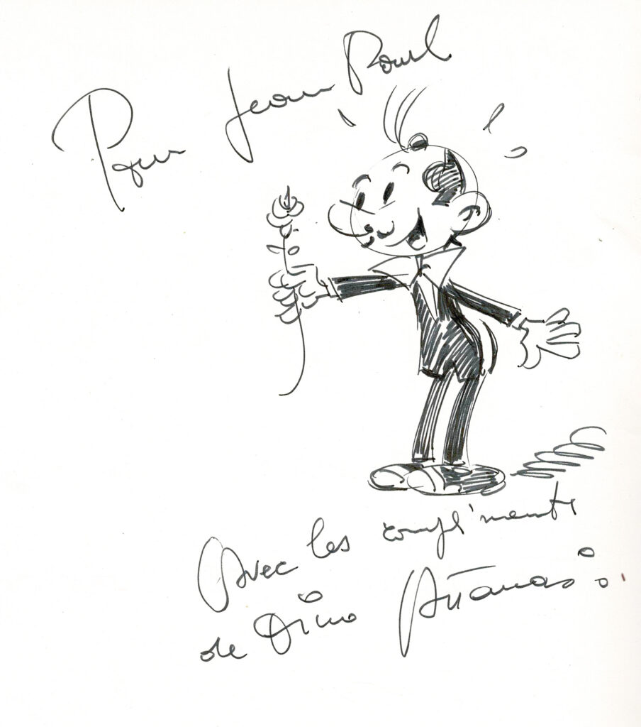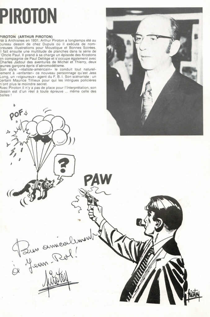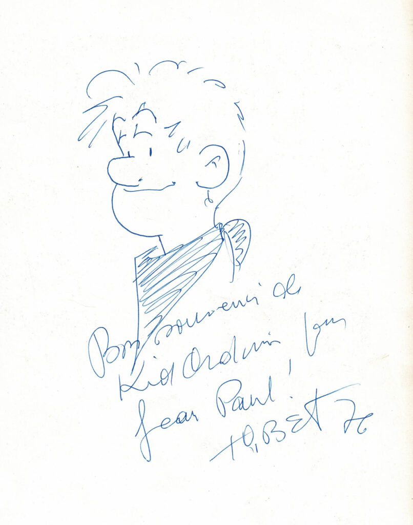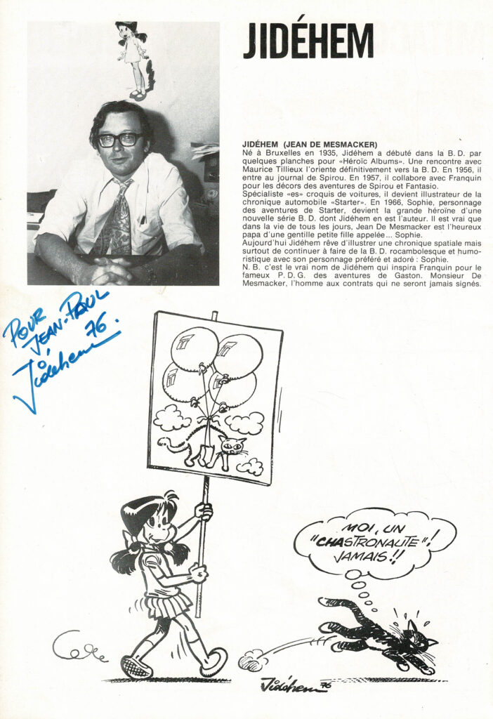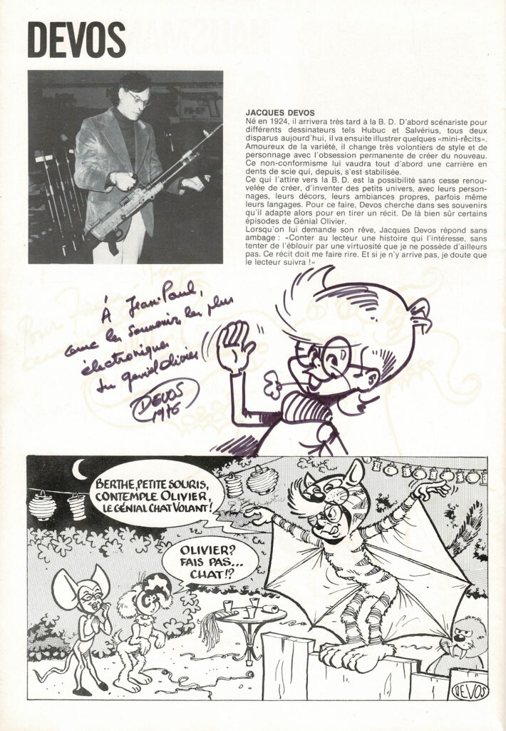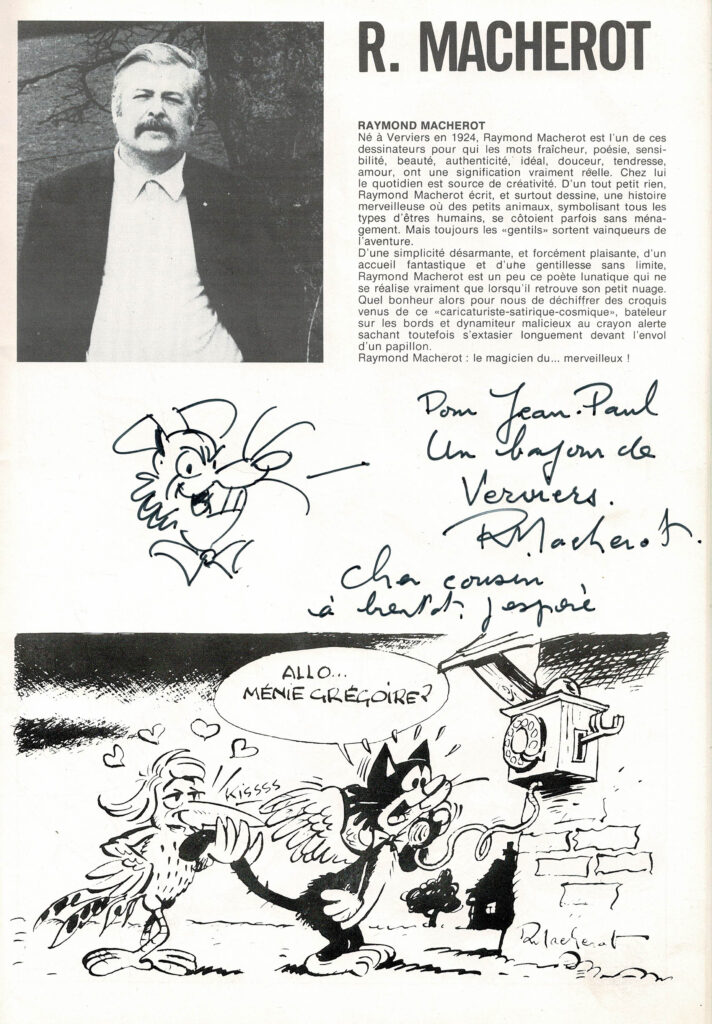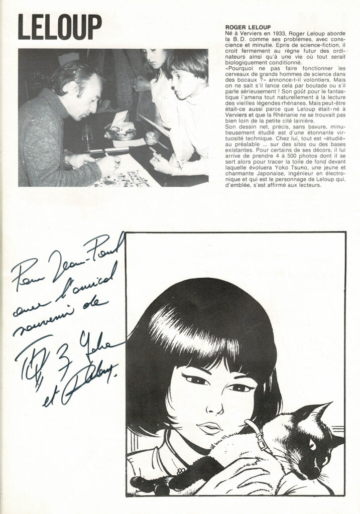 Programme du festival BD de Verviers de 1976 et son affiche, avec des dédicaces de Will 2x, Macherot, Hubinon, Leloup, Deliège, Francis 2x, Walthéry, Seron, Lambil 2x, Beautemps 2x, Gos 2x, Sleen 2x, Attanasio, Ernst, Devos 2x, Tibet, Piroton, Mélis. Egalement des signatures de Peyo, Hubinon, Carpentier, Leloup, Comès, Piroton Hausman et Jidéhem.