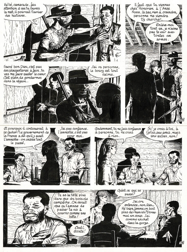 Le Sang du Flamboyant, planche originale à l’encre de chine. Dimensions : 43 cm x 32,5 cm.