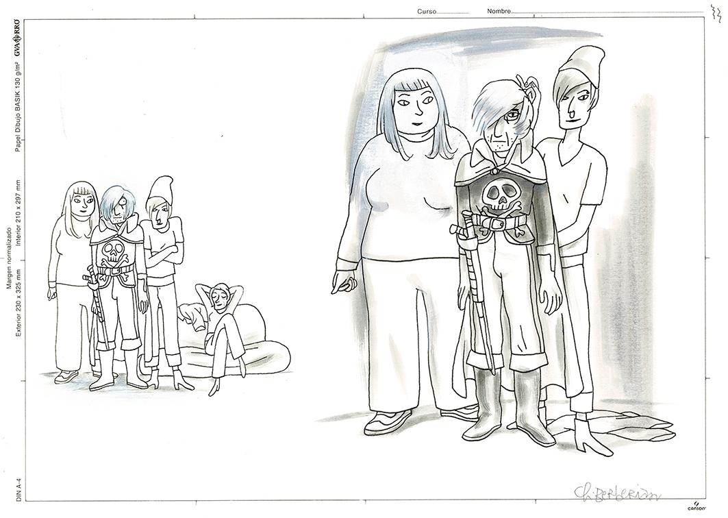 Albator, dessin original à l’encre de chine et au lavis. Dimensions : 32,5 cm x 23 cm.