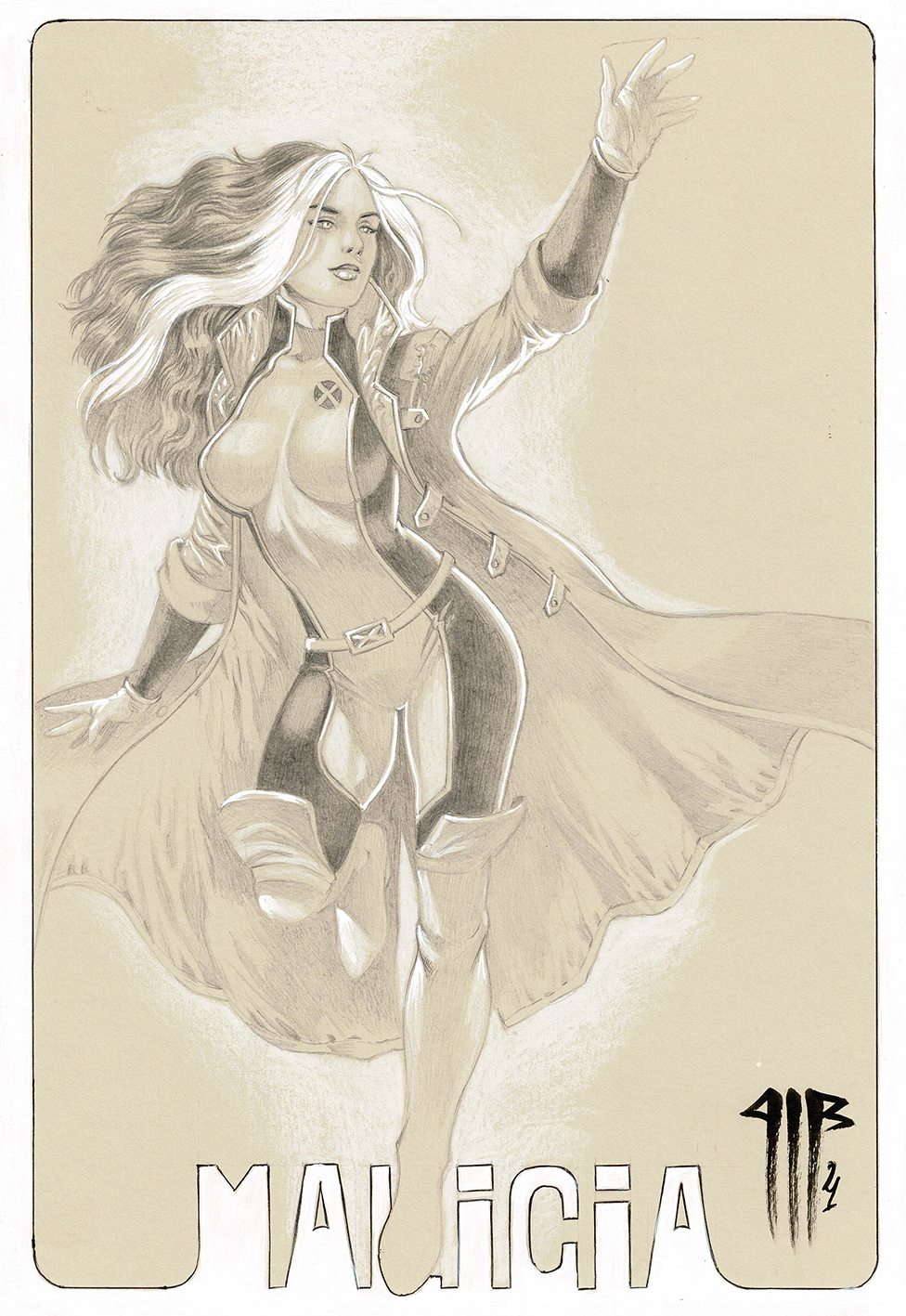 Malicia, dessin original à la gouache et à la mine de plomb. Dimensions : 42 cm x 29,5 cm.
