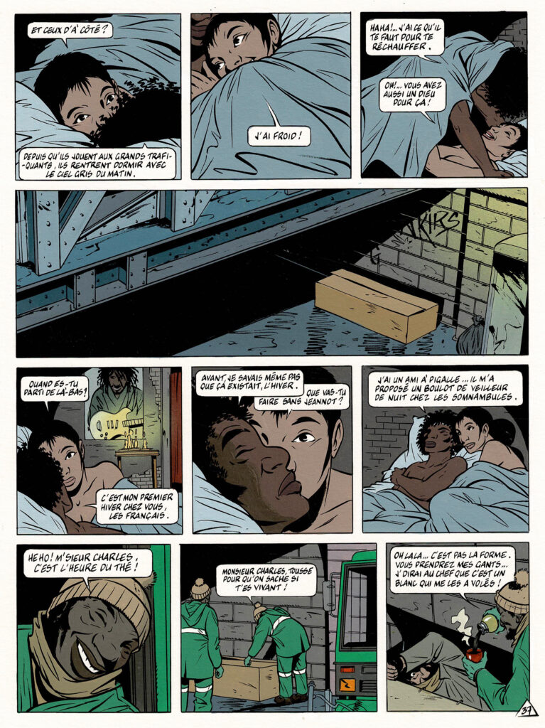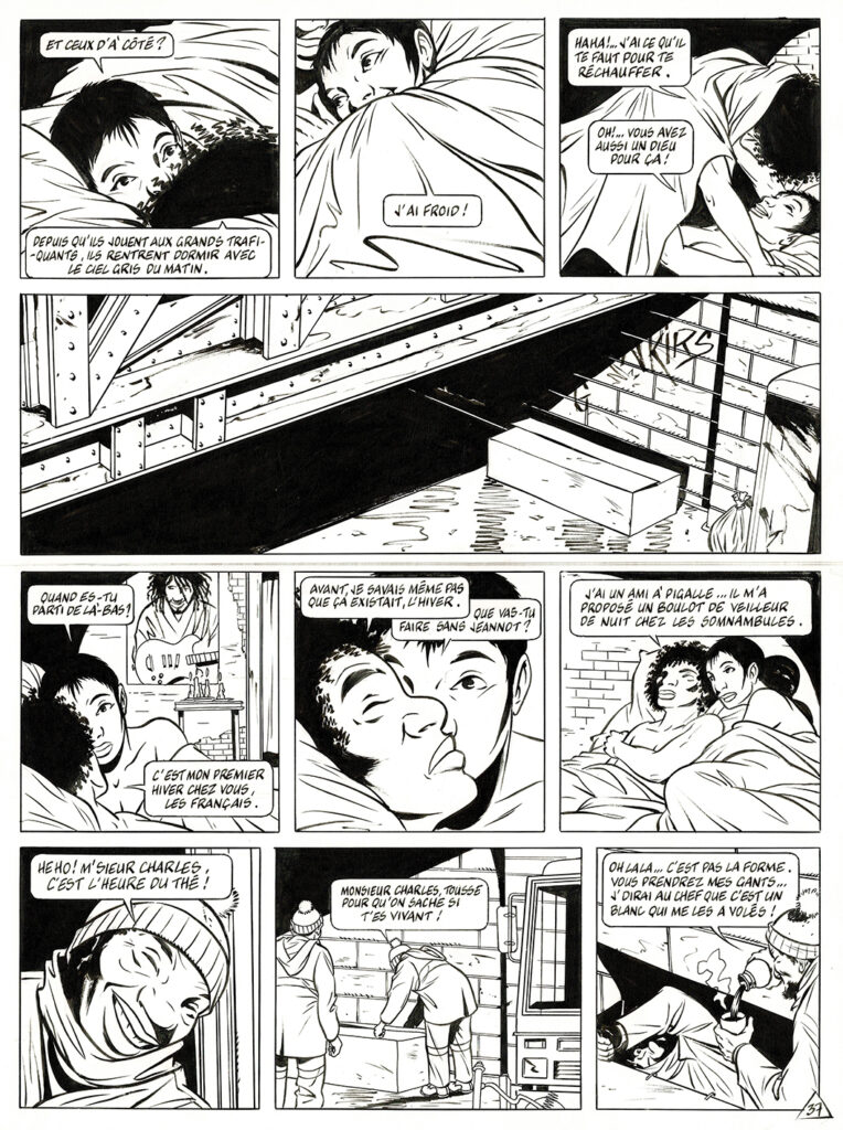 Bitume, Paris-Trottoir, planche originale à l’encre de chine. Dimensions : 44 cm x 33 cm. On joint la mise en couleurs.
