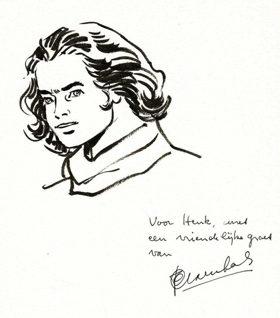 Chevalier Ardent, dessin original à l’encre de chine, dédicacé. Dimensions : 29,5 cm x 21 cm.