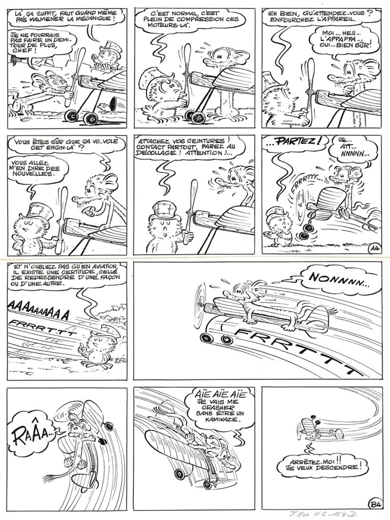 Les aventures de Rififi, planche originale à l’encre de chine. Dimensions : 51 cm x 36,5 cm.