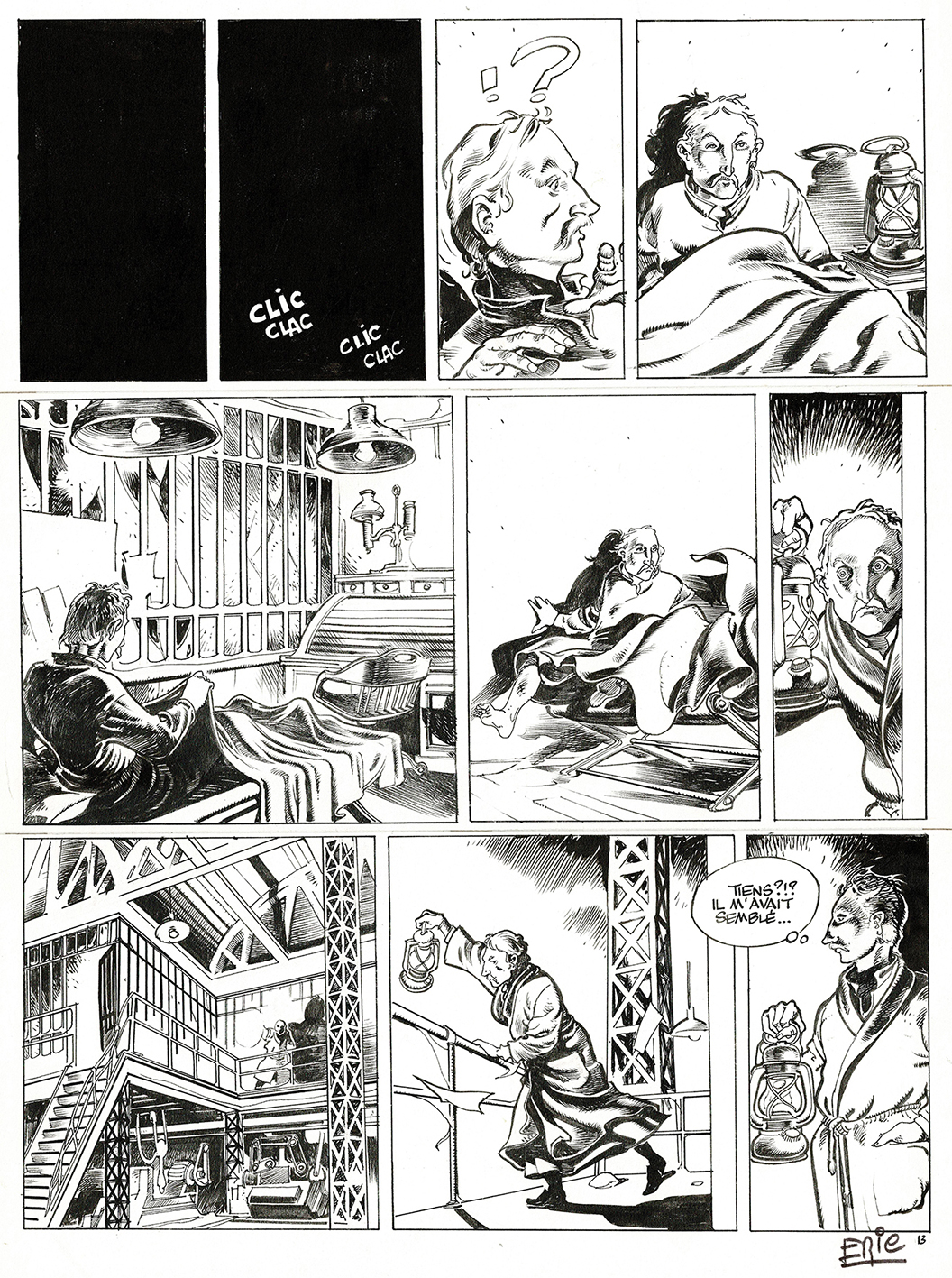 Le verrou, planche originale à l’encre de chine pour cet album paru en 1987 chez Dargaud. Dimensions : 52 cm x 39 cm.