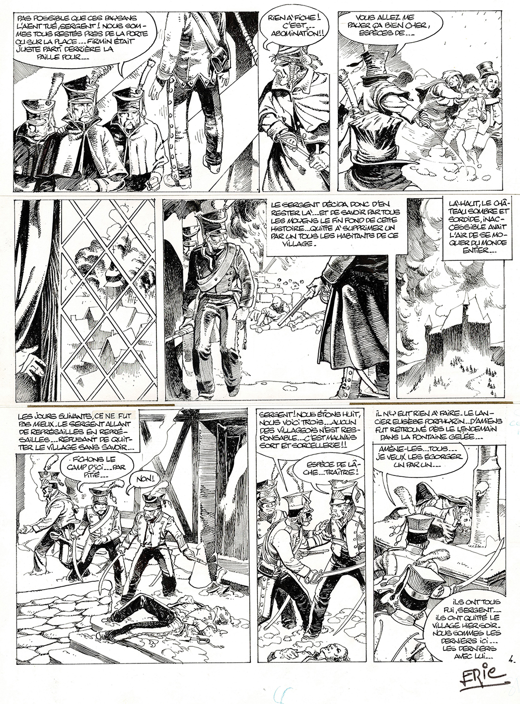 Les perdus de l’Empire, planche originale à l’encre de chine. Dimensions : 51 cm x 36,5 cm.