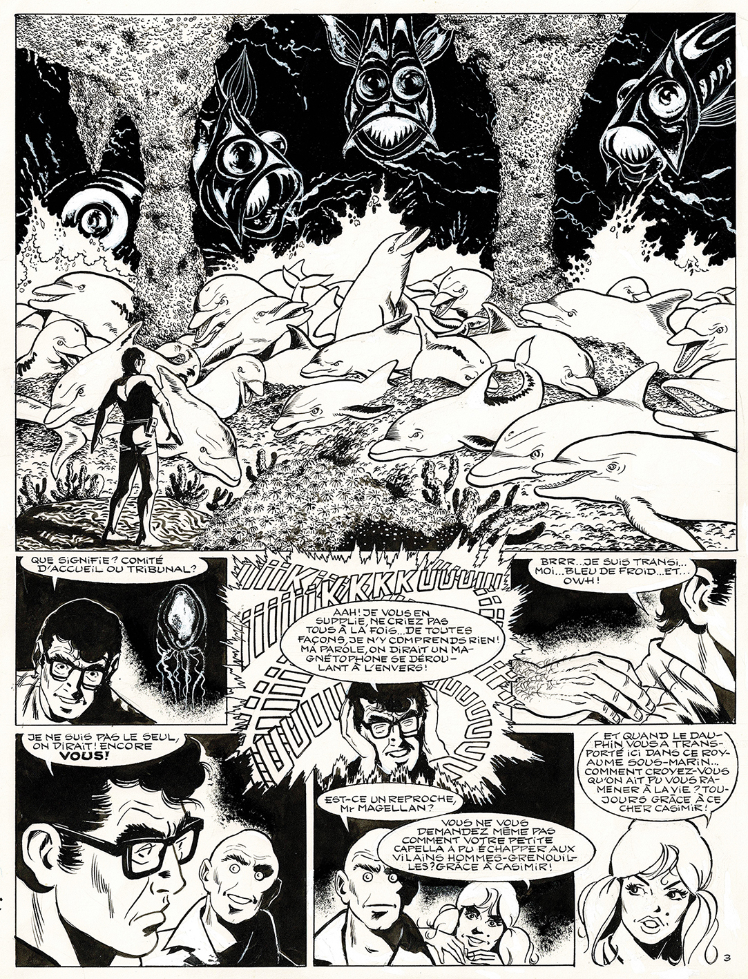 Mr Magellan, planche originale à l’encre de chine. Dimensions : 48 cm x 36,5 cm.