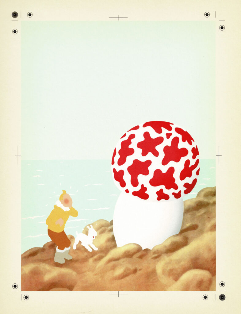 Tintin, L’Etoile Mystérieuse, bleu de coloriage et son film noir pour la couverture de l’album. Dimensions : 41 cm x 32,5 cm.